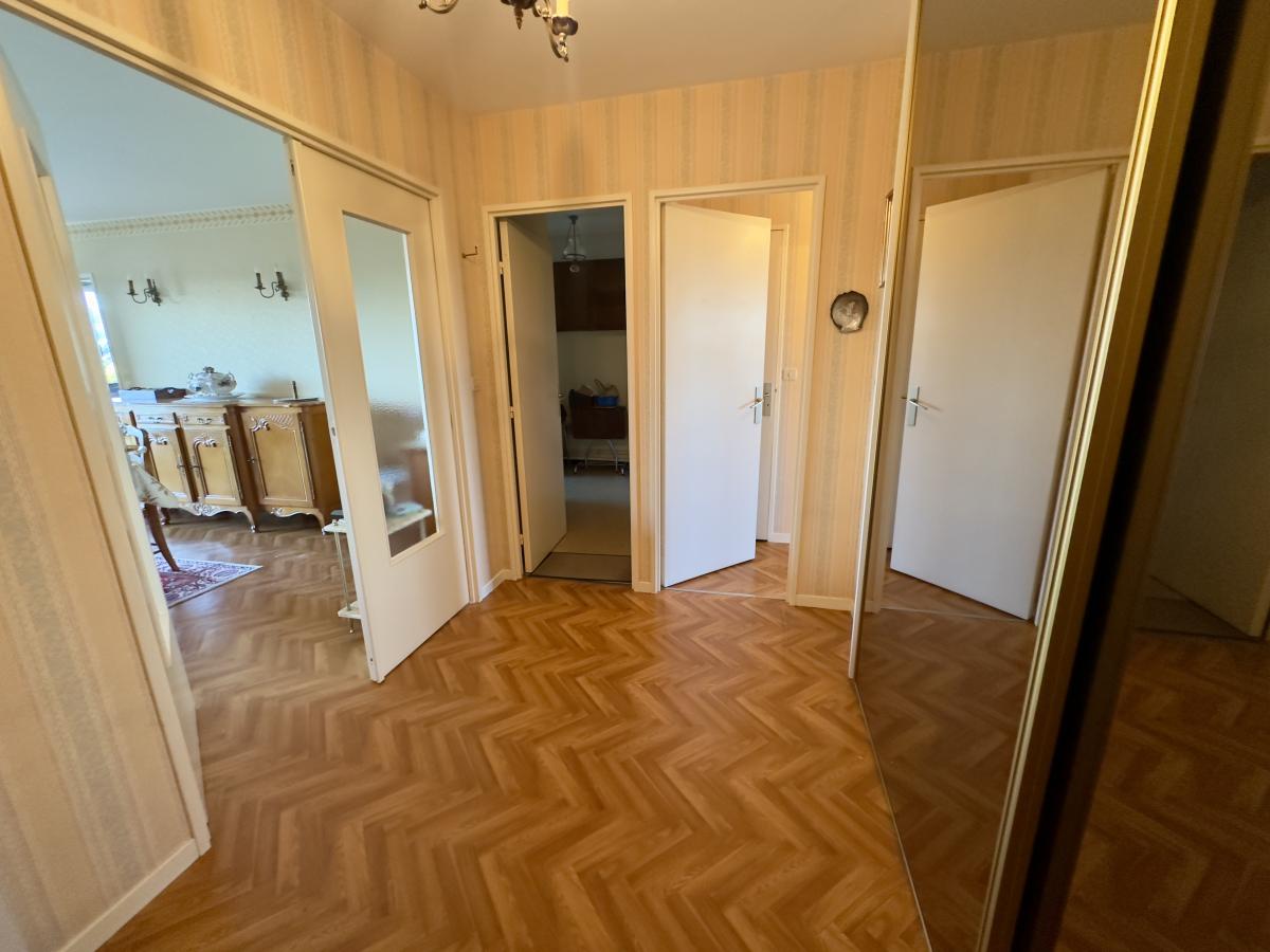 Hall d'entrée avec vestiaire, salon séjour lumineux de 38m² avec cheminée insert avec 2 abies vitrée donnant accès aux 2 balcons, cuisine, cellier, WC, couloir avec placard, 2 chambres, salle de bains.