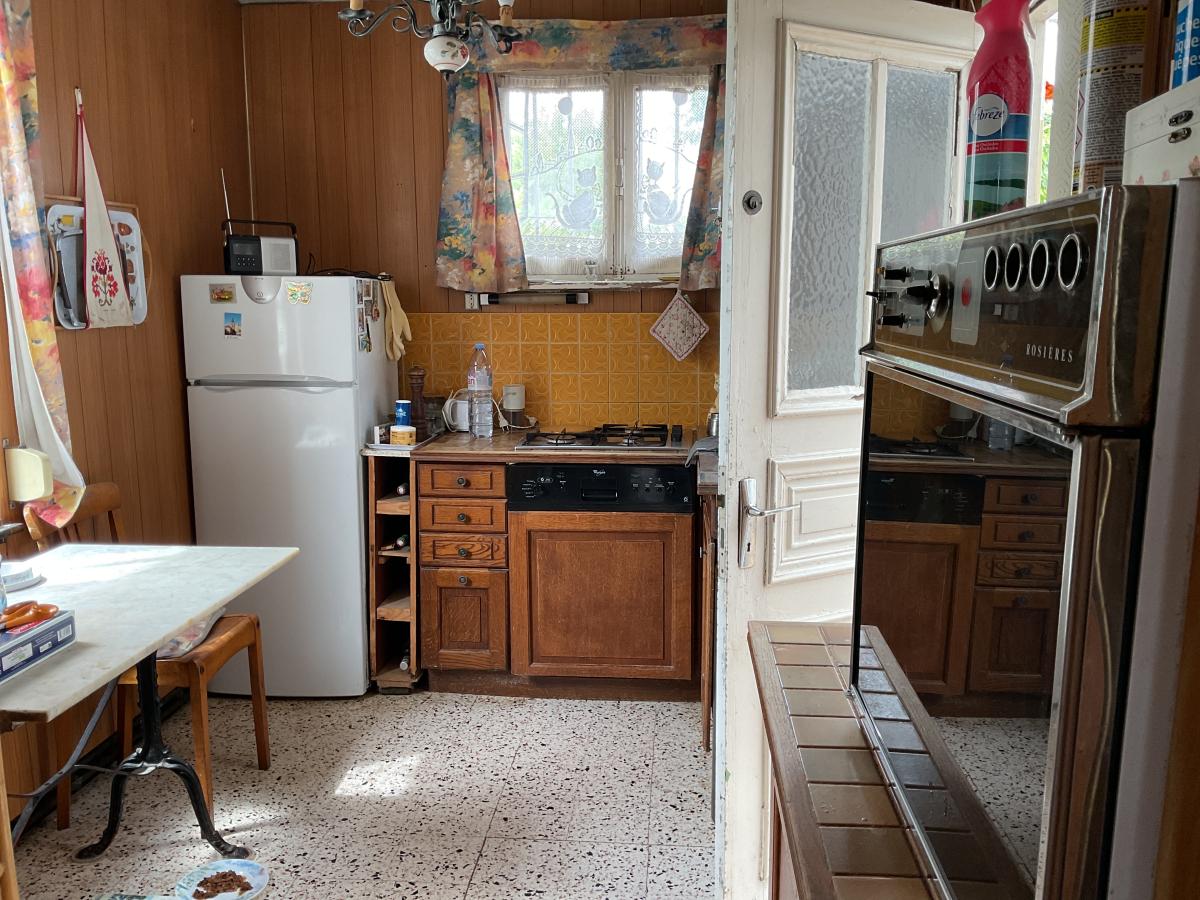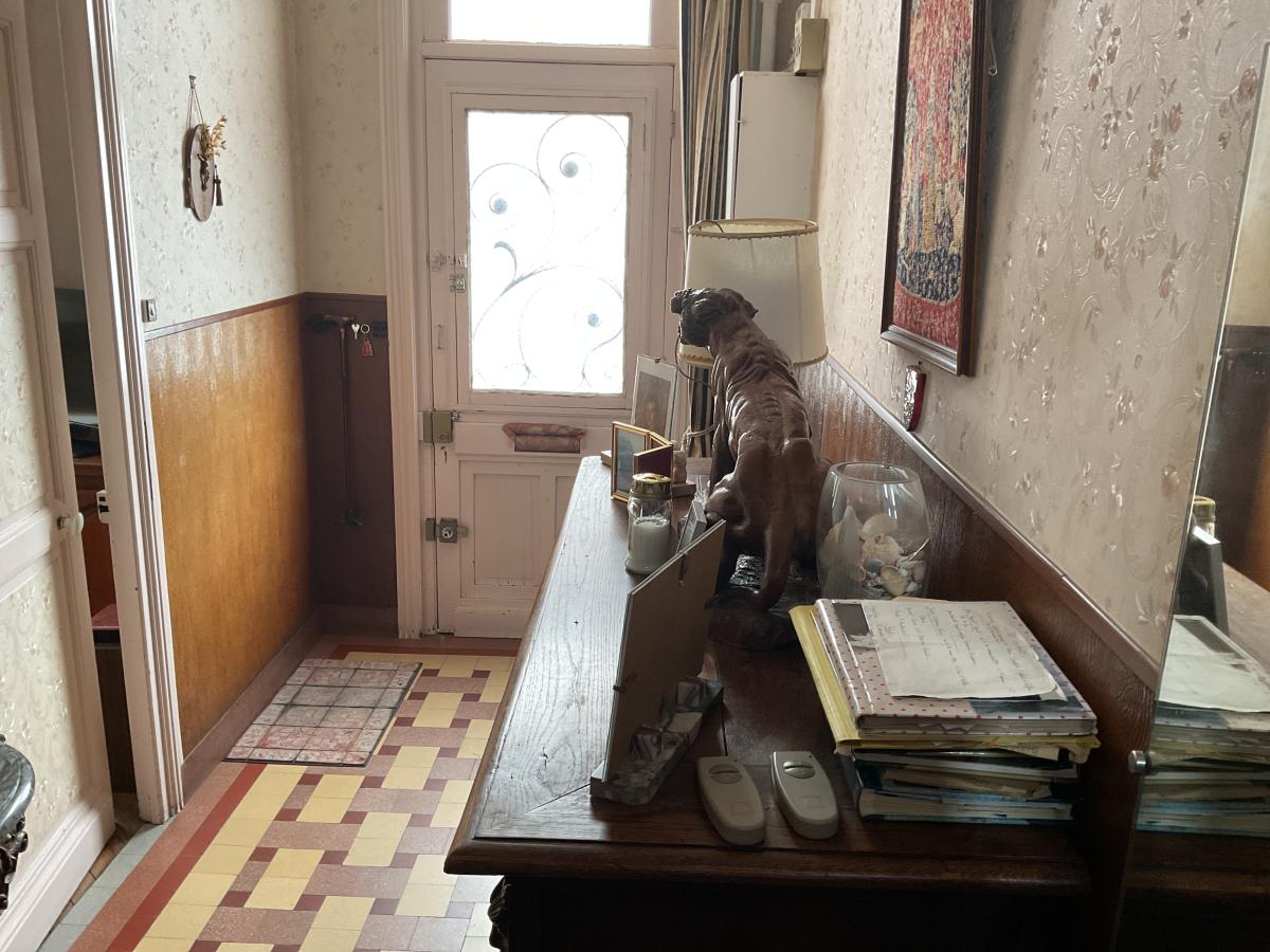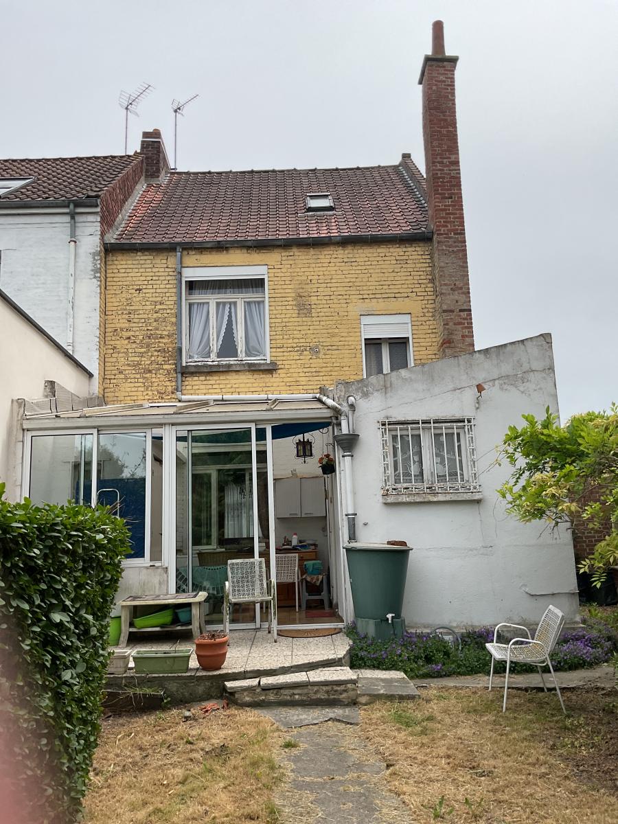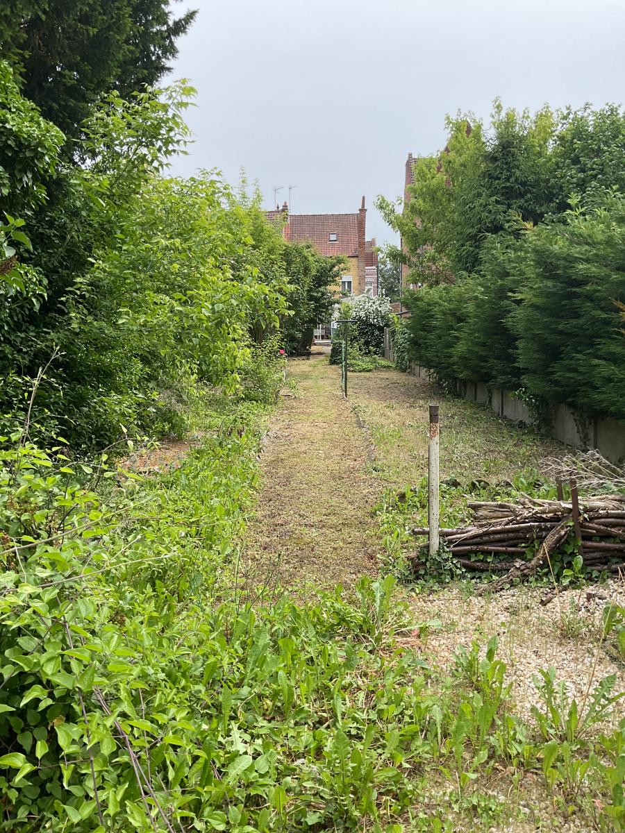 DOUAI, maison de ville à rénover bâtie sur 433 m² comprenant hall, salon, salle, cuisine, véranda avec accès WC au 1er étage 2 chambres, salle de bains au 2ème 1 chambre, grenier.